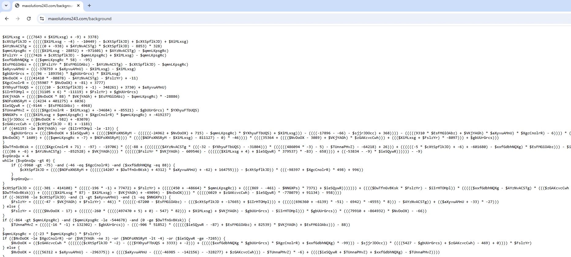 hxxps[://]maxsolutions243[.]com/background/ as shown in Figure 3 and deobfuscated code in Figure 4.