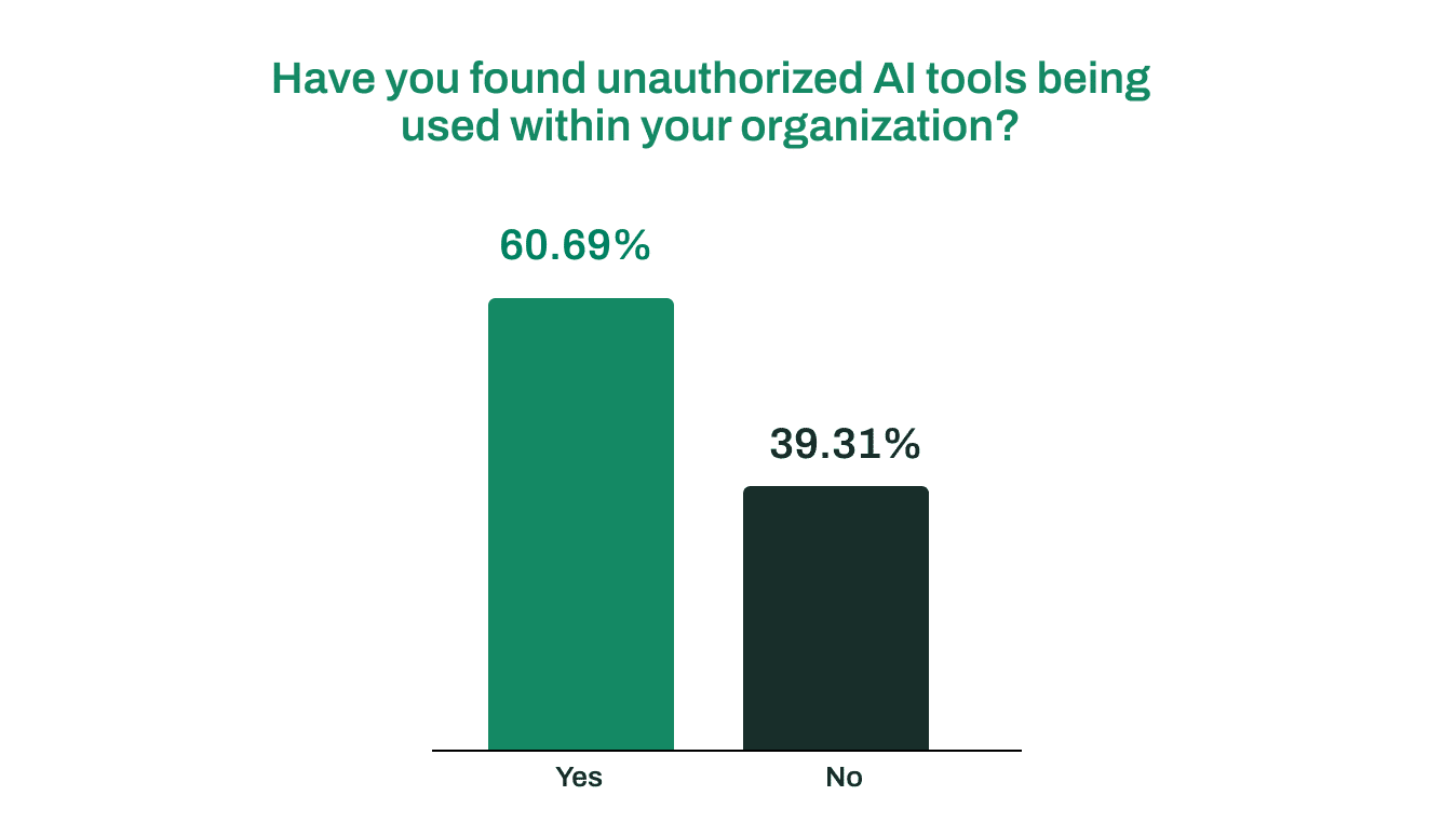 And that lack of monitoring and visibility has predictable results. Nearly 61% of survey respondents say they’ve already found unauthorized AI tools in their environments—tools being fed corporate data with no guardrails or governance around how they’re used.